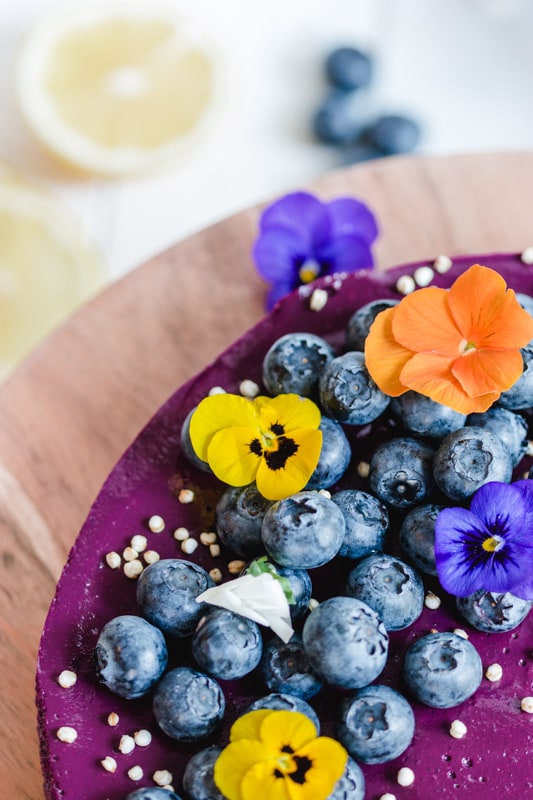 Ce cheesecake végane citron & myrtilles est vraiment un délice ! Pas de grande surprise au niveau de la recette, je reprends ma recette fétiche déjà réalisée à plusieurs reprises sur le blog (retrouvez le cheesecake aux fraises ou celui aux épices chaï par exemple).
